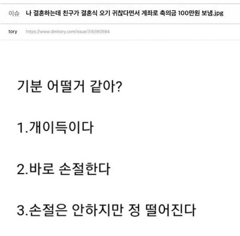 내 결혼식에 친구가 가기 귀찮다면서 축의금만 보냄