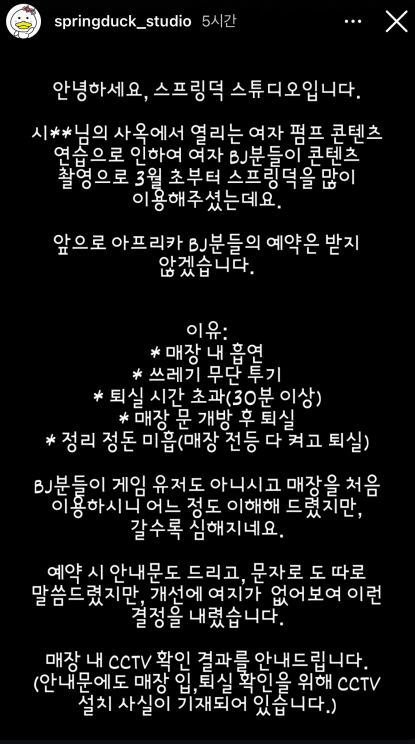 스튜디오 퇴출당한 숲 여캠들