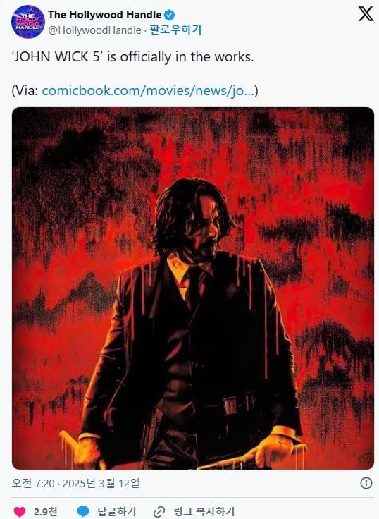 '존 윅' 5편이 공식적으로 제작 단계에 돌입