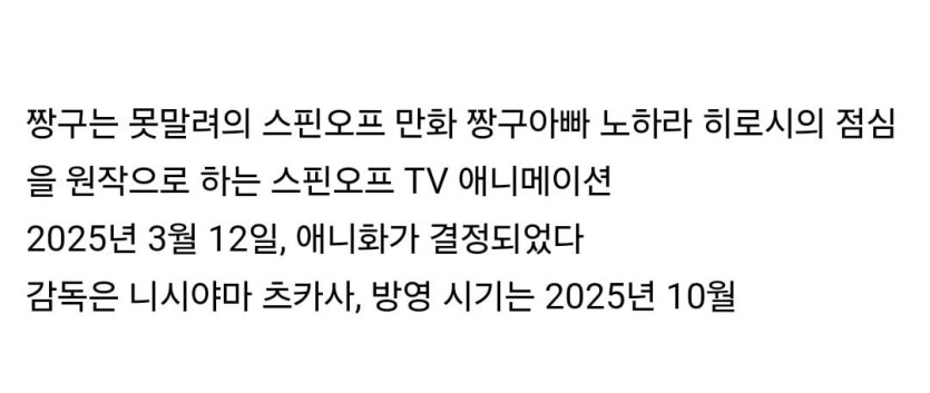<짱구아빠 노하라 히로시의 점심식사 방식> 애니화 25년 10월부터 방송