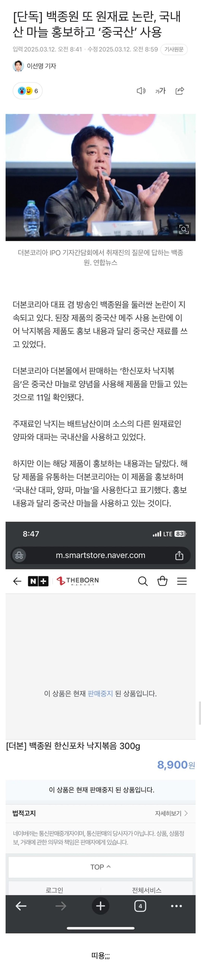 백종원 된장 또 터짐..