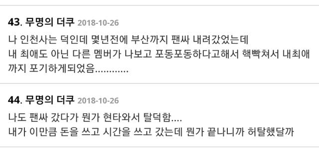 아이돌 덕후들이 현타와서 탈덕하게 되는 계기