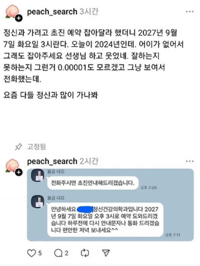 흔한 정신과 초진 예약 상황
