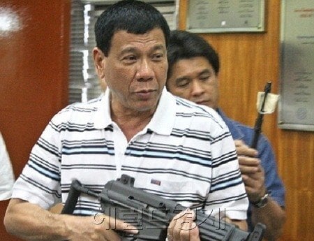그는 홍콩 방문 후 귀국하던 중이었는데 임기 중 마약과의 전쟁으로 수만명을 사살한 것에 대해 "반인도적 살상 혐의"로 체포되었다.
