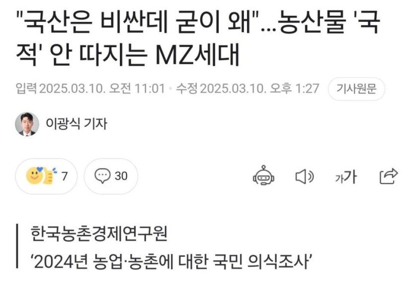 요즘 MZ세대들은 국산농산물 거른다는 기사 ....news
