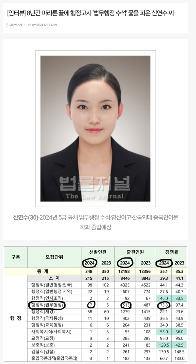2024년(31세) 11월, 5급 법무행정직 수석 합격
