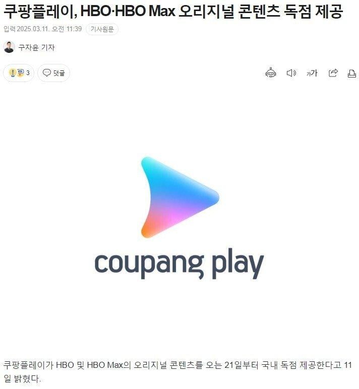 쿠팡플레이, HBO맥스 콘텐츠 독점 공급