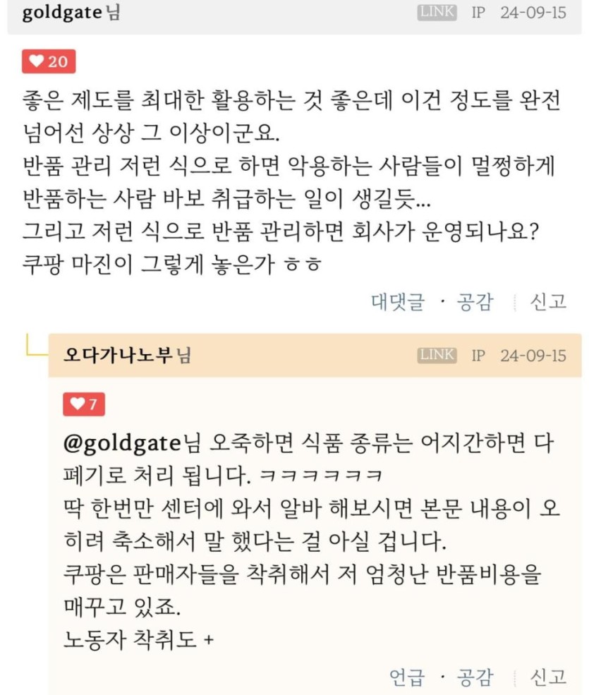 쿠팡 반품 센터 투잡하면서 느낀 점