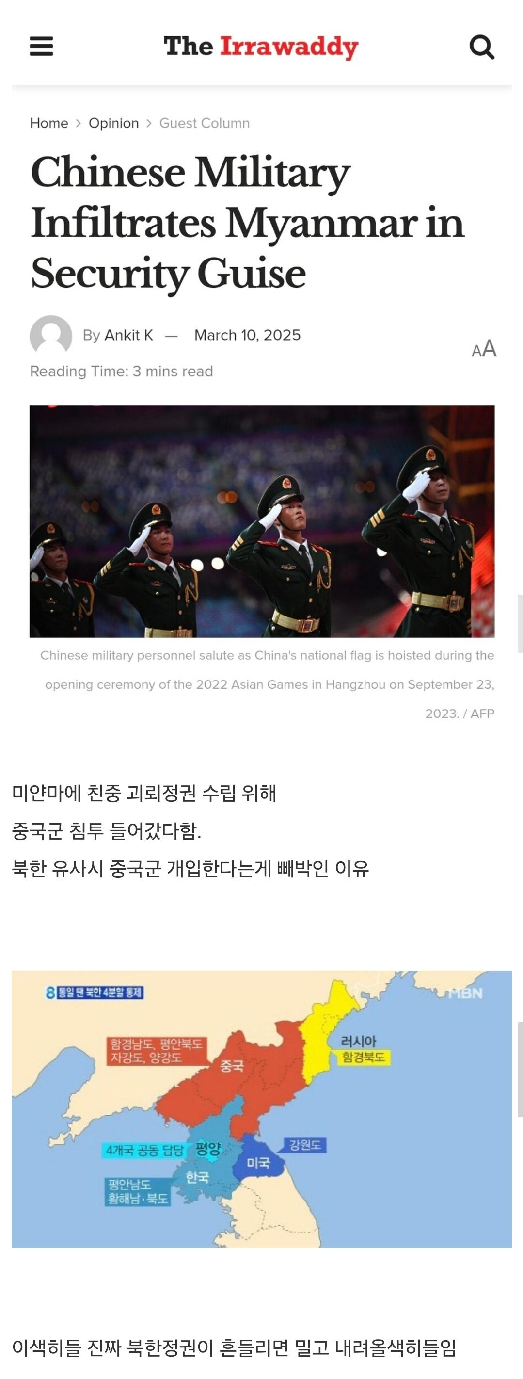 중공군 미얀마 진입 rh1 0 135 0 2025.03.11 11:45 https://www.irrawaddy.com/opinion/guest-column/chinese-military-infiltrates-myanmar-in-security-guise.html 0