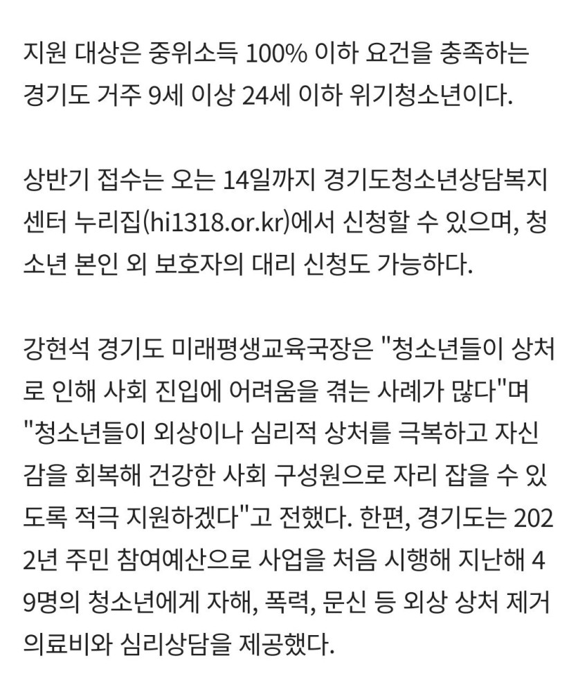 "문신 제거에 치료비 200만원 드려요"... 경기도가 내건 획기적 청소년 복지 rh1 0 201 0 2025.03.11 03:45 https://link.naver.com/bridge?url=https%3A%2F%2Fwww.insight.co.kr%2Fnews%2F494309&dst=naversearchapp%3A%2F%2Finappbrowser%3Furl%3Dhttps%253A%252F%252Fwww.insight.co.kr%252Fnews%252F494309%26version%3D10%26sourceReferer%3Dshare 0