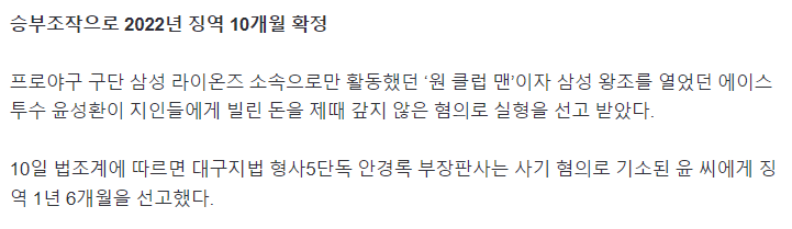 에이스의 몰락…'삼성 전설' 윤성환, 빚 안 갚아 감옥행 .news