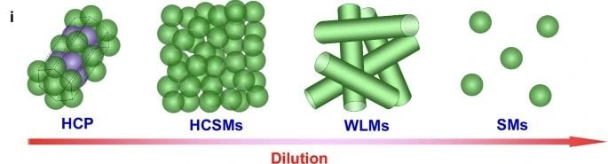 희석된거닌까 HCP 구조가 느슨해지면서 미셀간 거리가 늘어나니