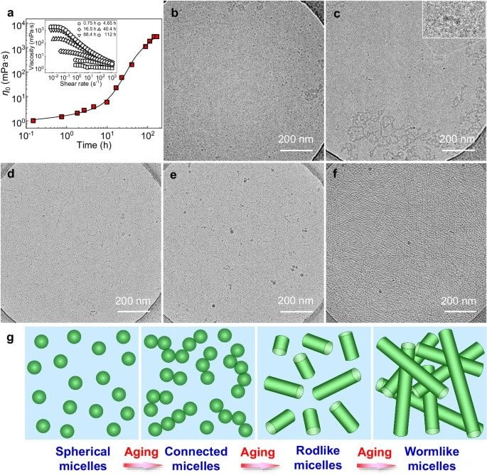이 희석과정은 진행될수록 이 WLMs 형성과정이 더욱 활발해져서 결국, 점점 더 길고 얽힌 WLMs 네트워크가 형성되고 점도가 올라가게 됨