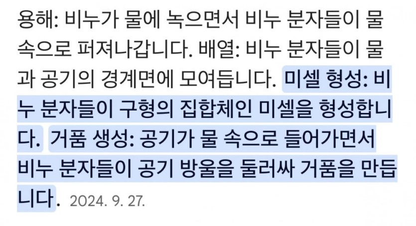 거품, 미셀에 대해 많은 연구를 하고 있다만