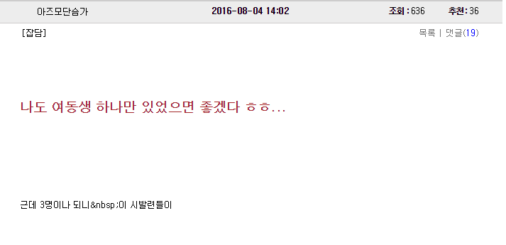 나도 여동생 하나만 있었으면 좋겠다 ㅎㅎ