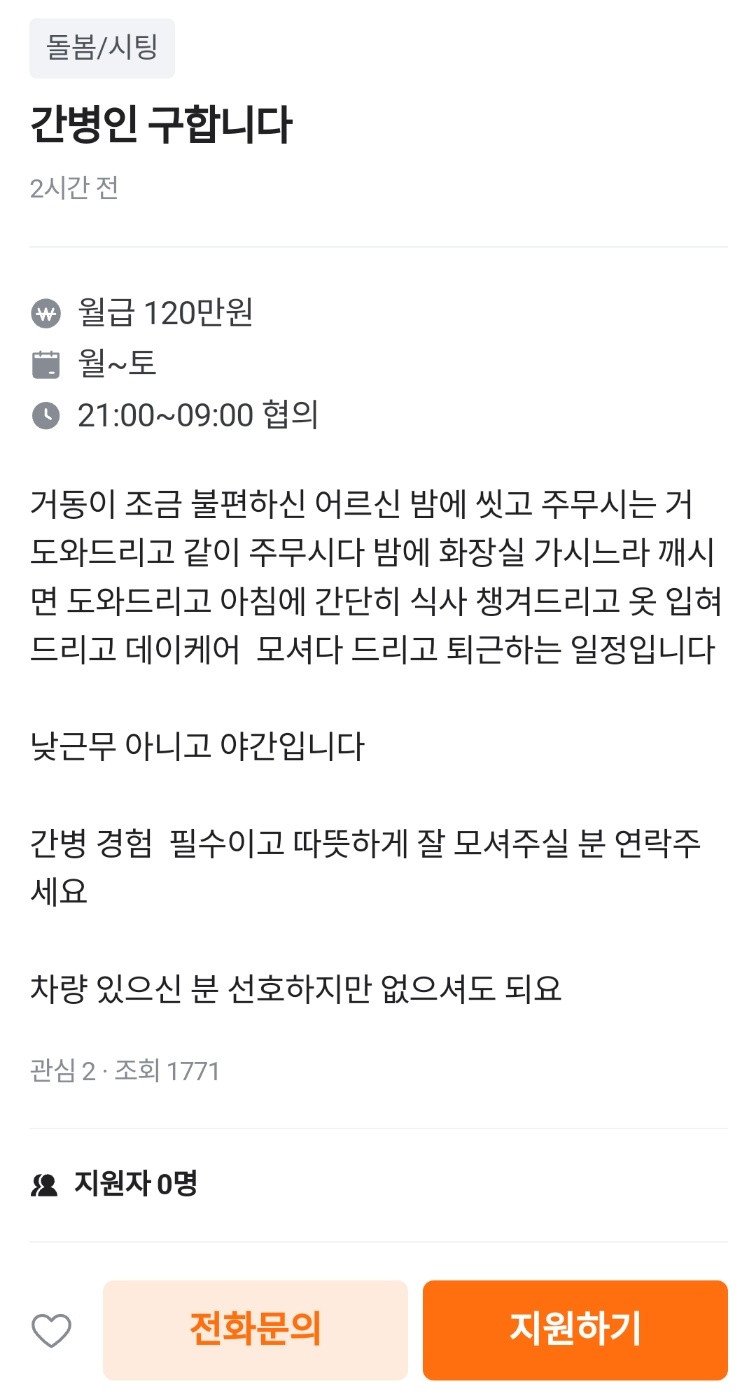 야간 간병 120 ㄷㄷ