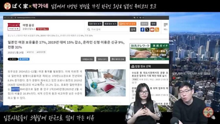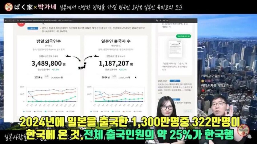 일본 대상 관광 적자를 극복할수 없는 절대적 이유 rh1 0 158 0 2025.03.10 00:15 500만명 차이가 나는데여권을 가진 일본인 2000만명..24년 해외로 출국한 일본인 전체가 1300만 밖에 안됨그중에서 1/4이나 한국에 와준것임요약 : 일본인들이 밖으로 나오질 않음 0