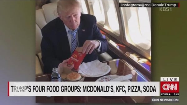 트럼프는 햄버거와 콜라를 아주 좋아함