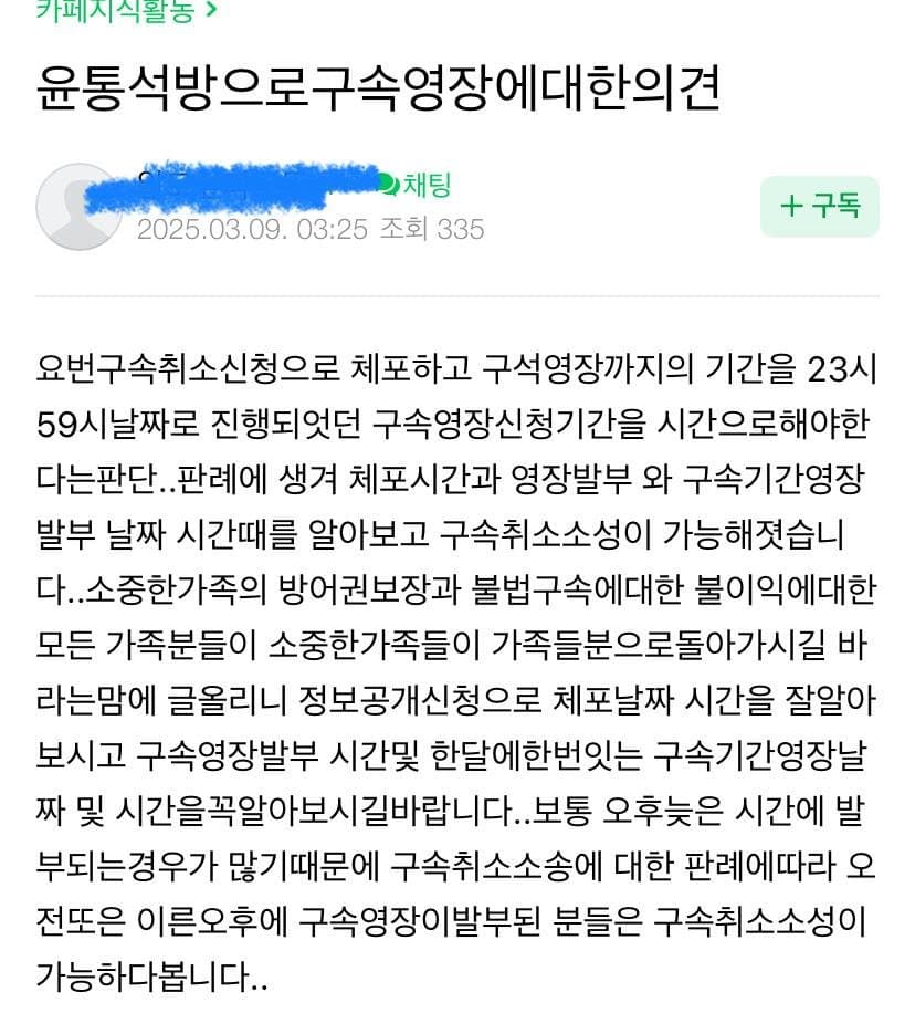 옥바라지 카페근황 rh1 0 80 0 2025.03.09 19:15 모든이에게 법은 평등하게 적용되야 하기때문에구속취소 소를 제기하는 경우가 쓰나미처럼 몰려들듯뭐 어쩌겠어 스스로 불러들인 재앙이지 0