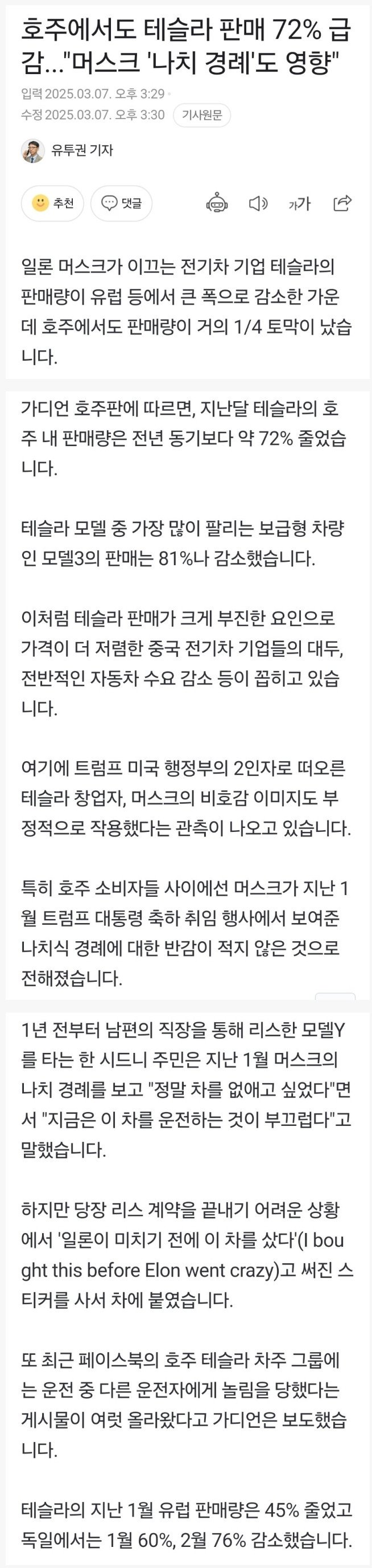 현재 테슬라 판매율 개박살 나버린 이유