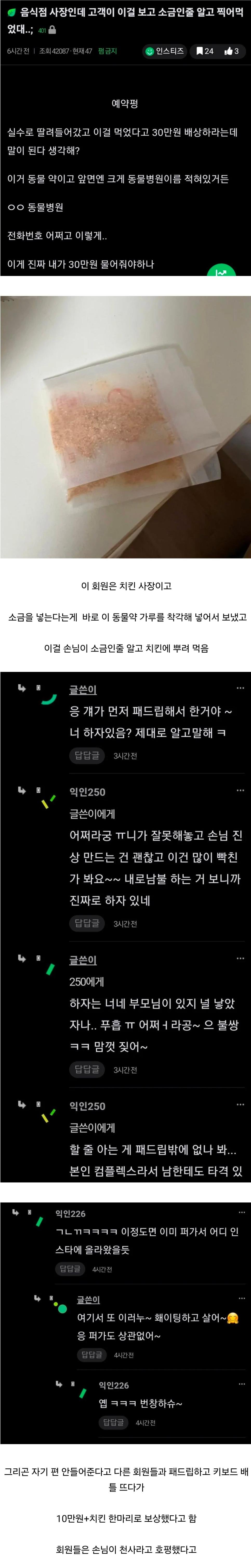 [유머] 음식점 사장인데 고객이 이걸 보고 소금인줄 알고 찍어 먹었대
