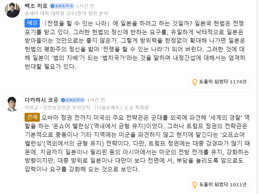 트럼프 "일본 방위비3% 올렸어? 아직 부족해"