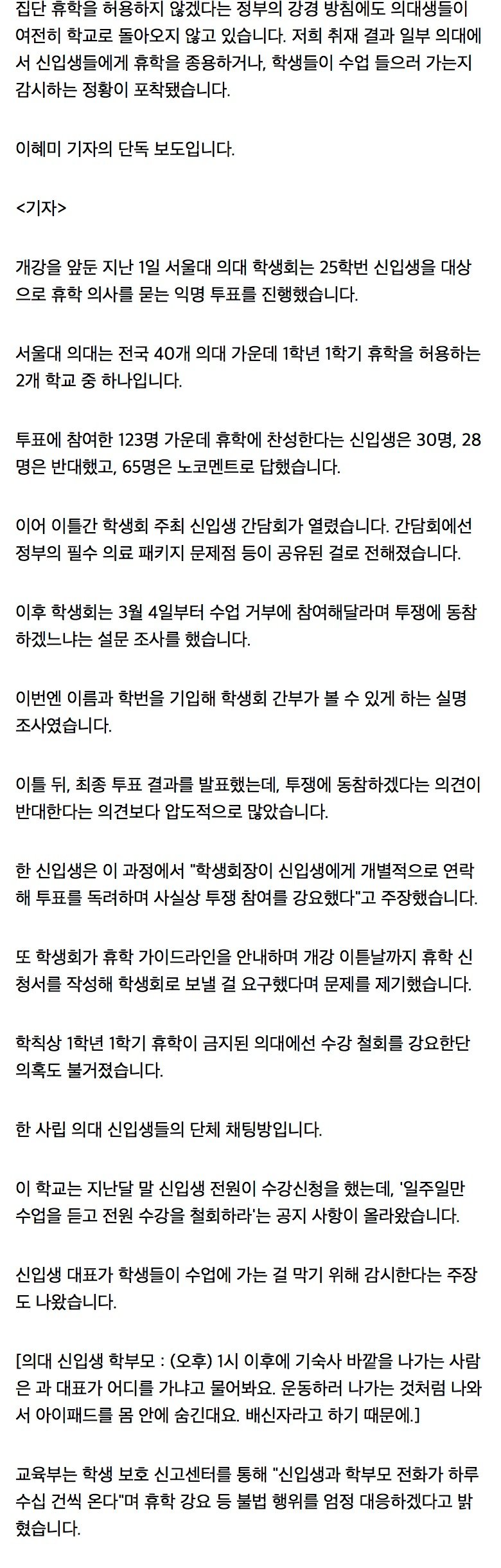 휴학 종용에 출석 감시까지..도 넘은 의대생들