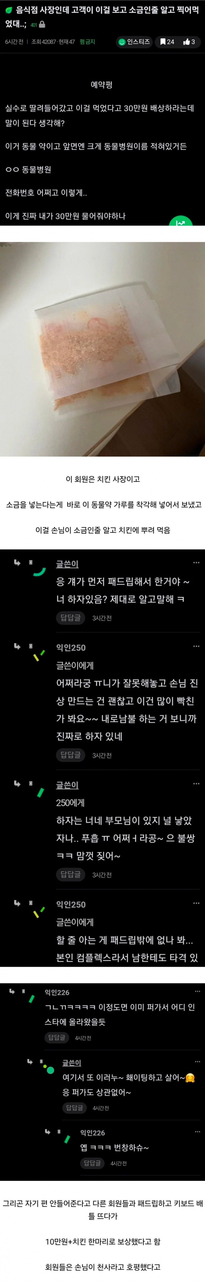 고객이 이걸 보고 소금인줄 알고 찍어 먹었대