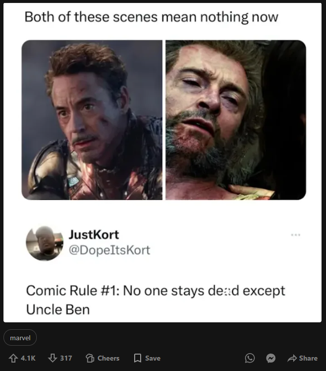댓글5: 마블 뭐 지금 잘나감? ㅋㅋ 이러나저러나 어차피 ㅈ됐는데