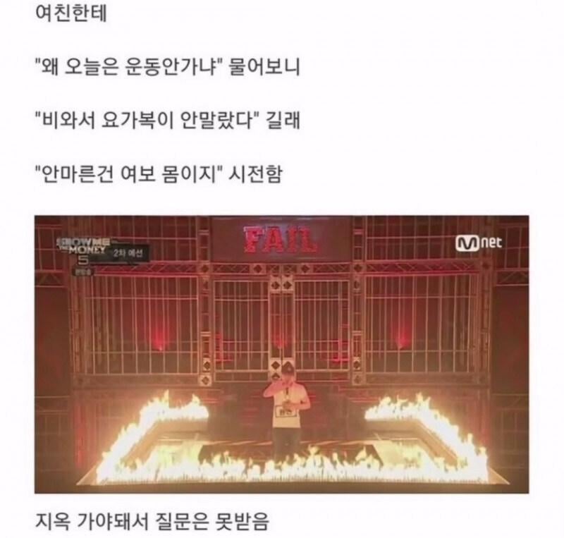 옷이 안말라서 운동 못간다는 여친