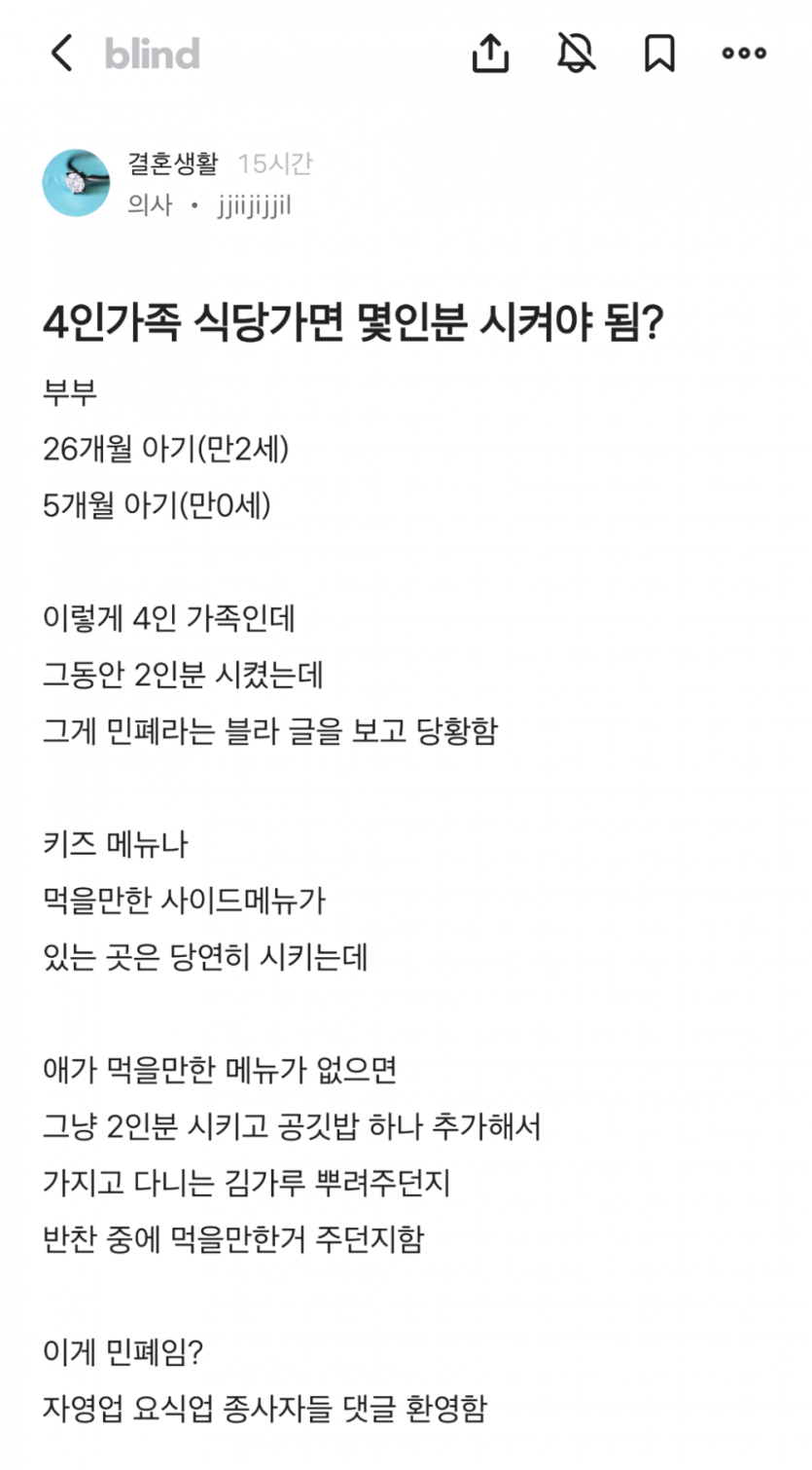 4인 가족 식당 가면 몇 인분 시켜야 됨?