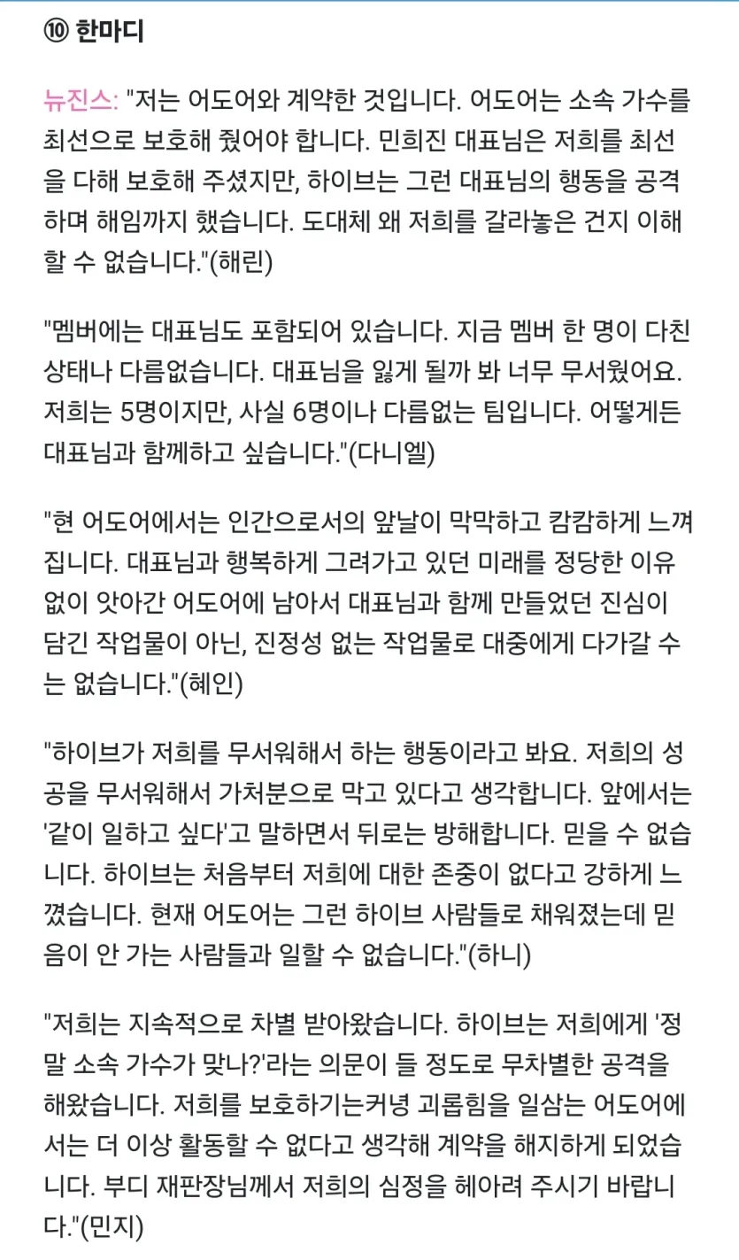 방금 공개된 뉴진스 멤버 법정 마지막 발언