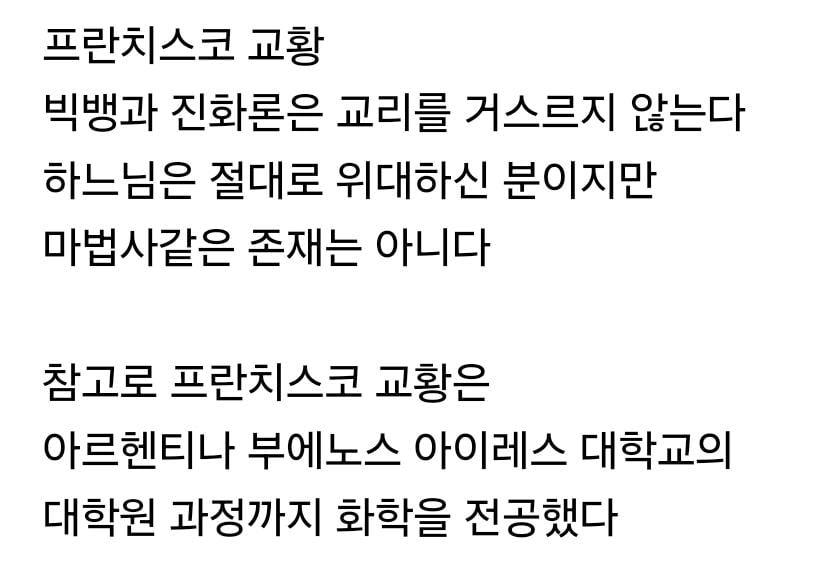 교황 "빅뱅, 진화론은 천주교 교리와 어긋나지 않아"