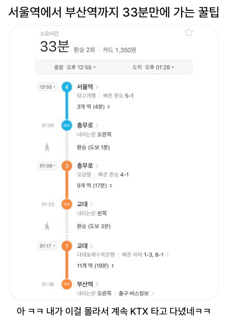 서울역에서 부산역까지 33분만에 가는 꿀팁