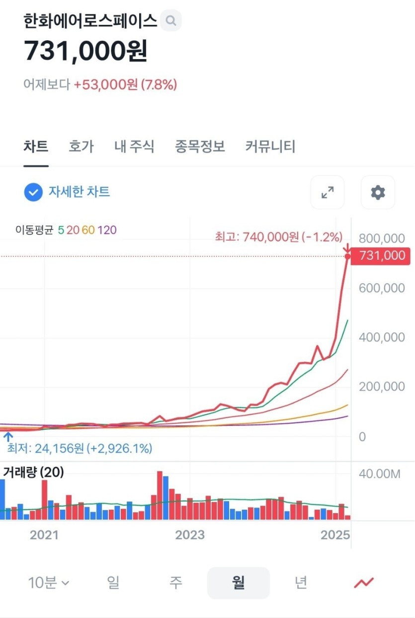 한화 에어로스페이스...닉값하면서 주가 우주로 올라가는중