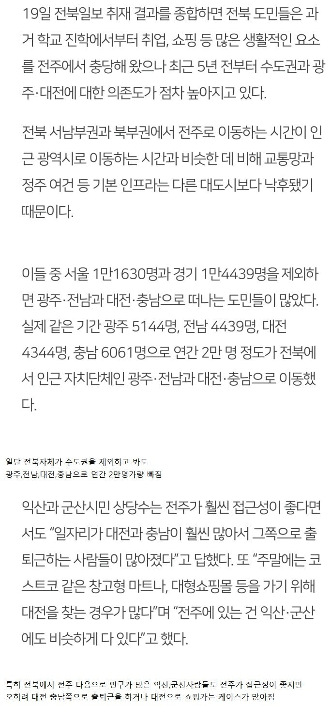 최근 5년 중심도시 역할을 못한다는 전라북도 전주시