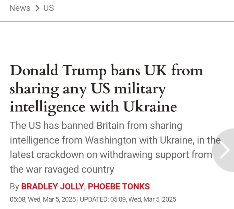 트럼프 : "영국아, 우크라이나한테 군사정보 제공하지마. 경고야!" rh1 0 147 0 2025.03.07 14:30 https://www.express.co.uk/news/us/2022681/donald-trump-bans-uk-from-sharing-military-intelligence-ukraine 쓰리아이즈 천진반 ㄷㄷ 0