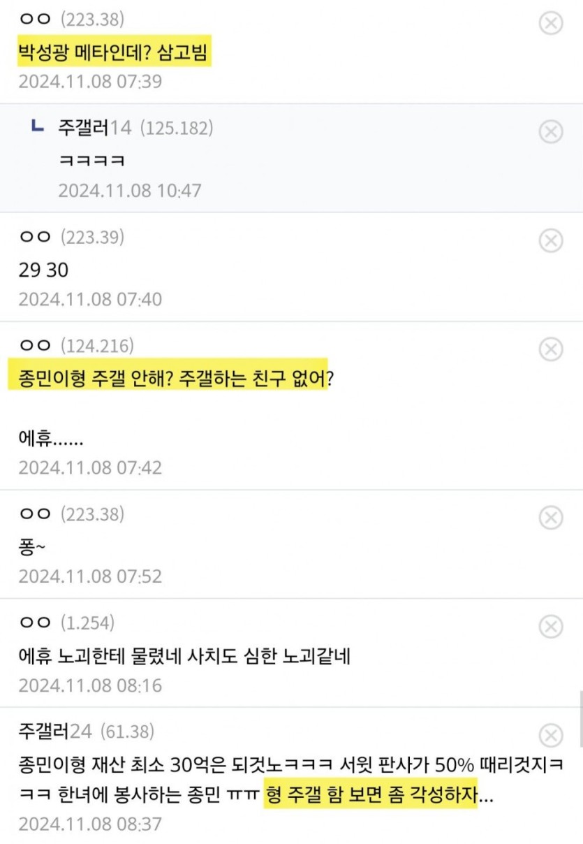김종민 결혼 소식에 달린 악플들