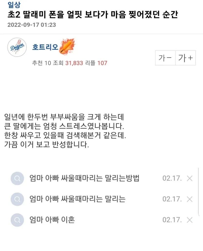 초2 딸래미 폰을 보다가 마음 찢어졌던 순간