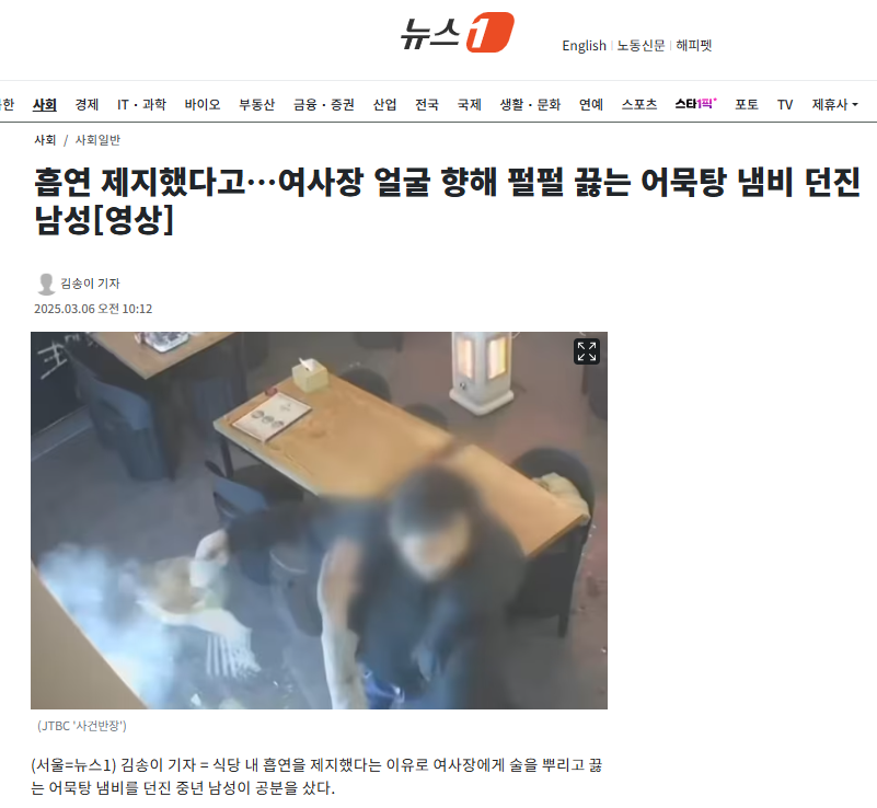 여사장 얼굴 향해 펄펄 끓는 어묵탕 냄비 던진 남성