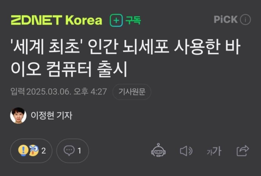 인간 뇌세포 컴퓨터 등장 ㄷㄷ.jpg rh1 0 142 0 2025.03.07 00:30 https://n.news.naver.com/mnews/article/092/0002365695 0