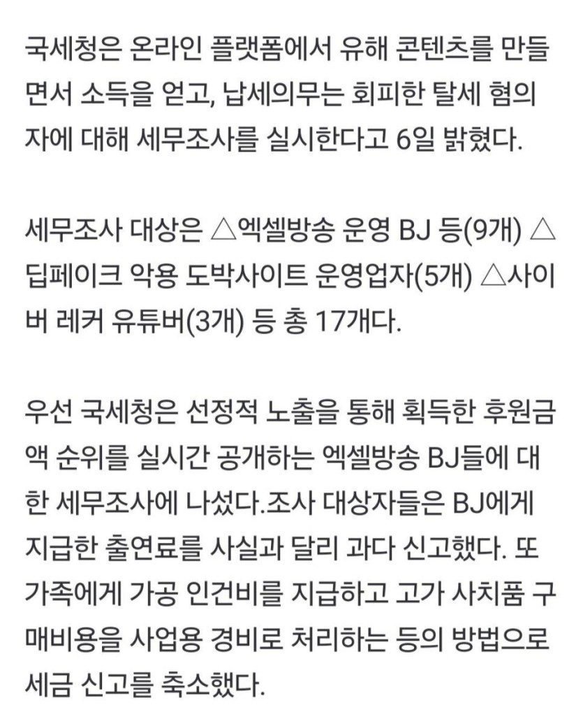 세무조사 시작하는 엑셀방송,렉카유튜버