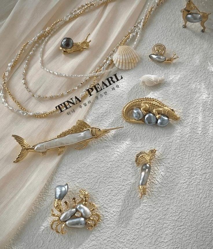 찌그러진 진주로 만든 액세서리가 많이 귀엽다