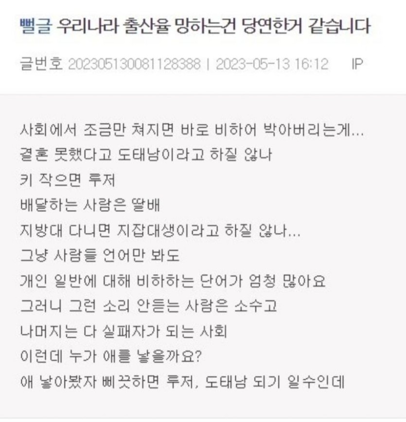 [기타] 출산율 망하는 게 당연한 이유.jpg
