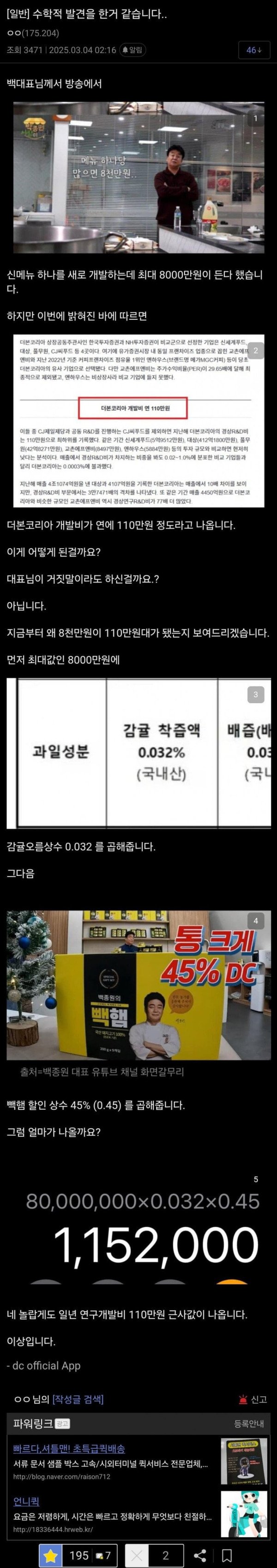 백종원 공식을 발견해낸 수학천재