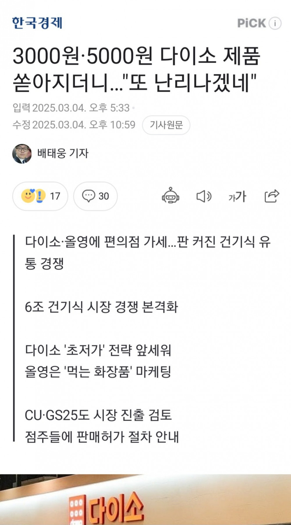 다이소가 강제 포기당한 영양제 판매 근황 rh1 0 151 0 2025.03.05 09:15 다이소는 약사들 압박에 겁먹은 제약사들때문에 실패당했지만, 소비자 반응 지켜보던 올리브영, 편의점 참전 시작ㅋㅋㅋ 다이소가 강제 포기당한 영양제 판매 근황 0