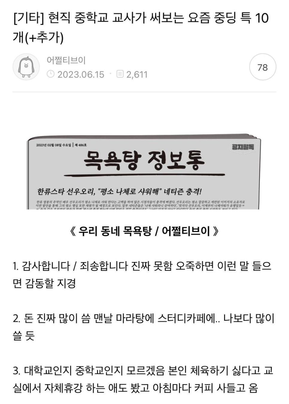현직 중학교 교사가 써보는 요즘 중딩들 특징 ㄷㄷ.jpg