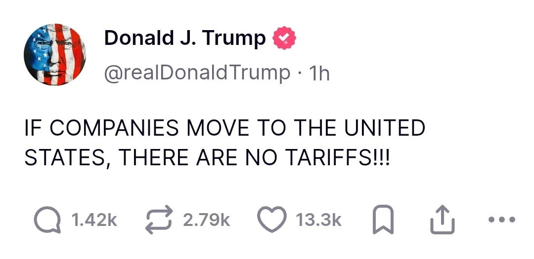 트럼프: 기업들을 미국으로 이전하면 관세없다