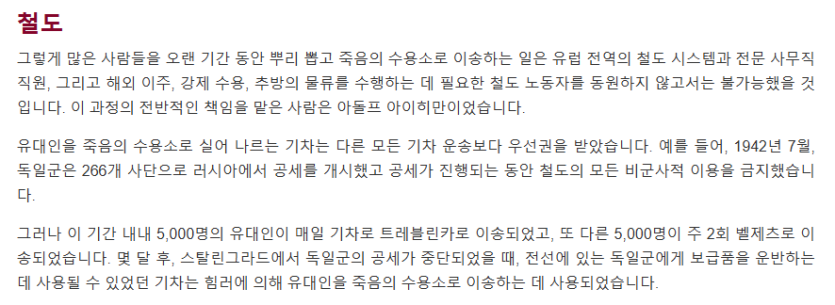 나치 독일이 진정 광기인 이유 rh1 0 135 0 2025.03.04 21:30 국가의 존망을 건 전쟁보다 학살을 중시함동서고금 대량 학살은 존재했지만, 명백한 손해를 보면서도체계적으로 및 국가의 행정력을 총동원해 항복 직전까지 살인 공장을 돌린 나라가 나치 독일이 유일함일단 다른나라도 인종청소 학살 했지만 전쟁하면 전쟁에 집중해야되서 내팽켜치는데 나치는 계속함 0