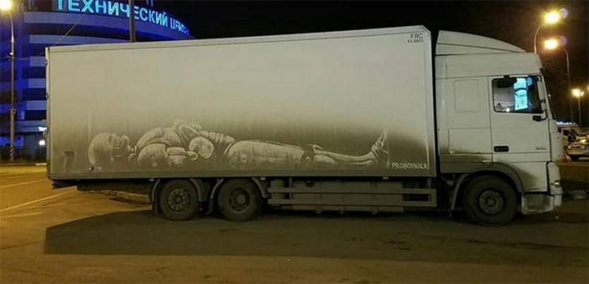 먼지 쌓인 더러운 자동차에 그리는 그림